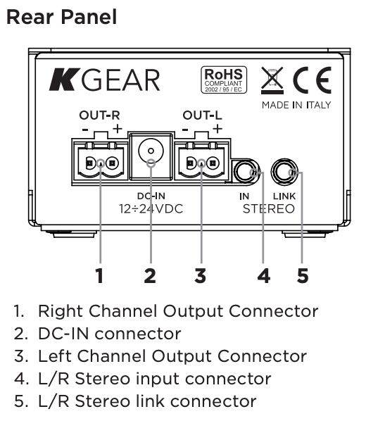 3.5mmジャック・コネクターにより、GA201アンプを最大6台まで連結し、スピーカーの総数を拡張することができます。この機能によりGA201は様々なオーディオ・システム構成に容易に適応し、異なるニーズや好みに応えることができます。